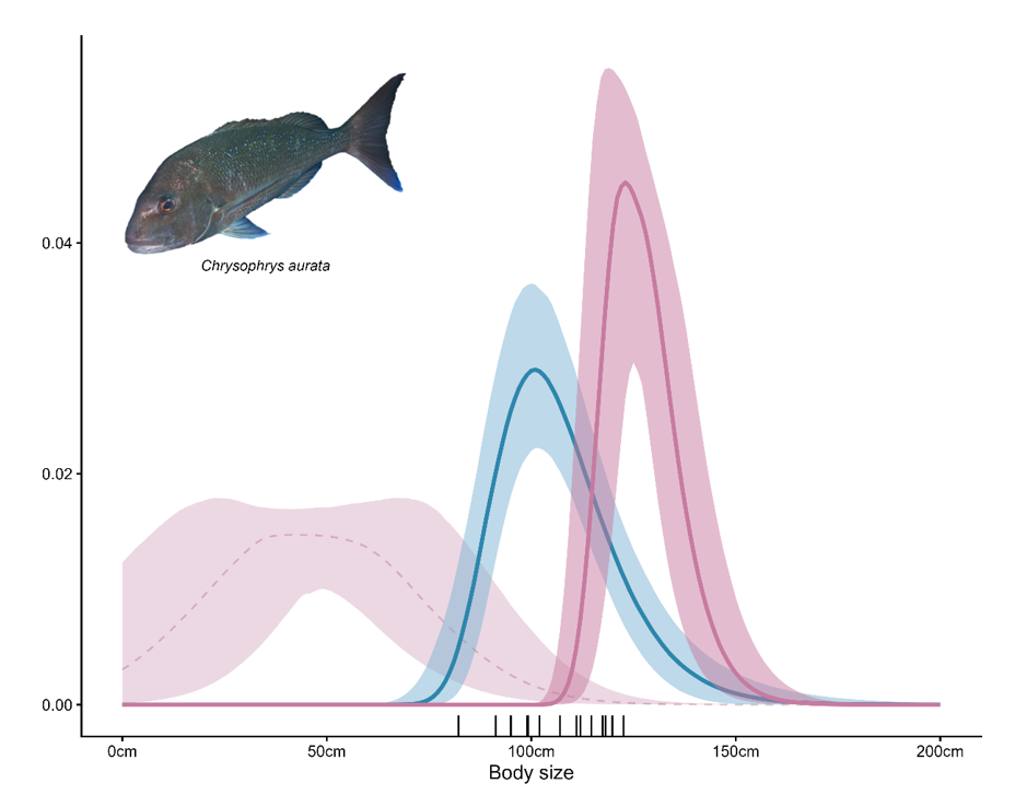 We are working on applying size based community models (e.g. mizer), as well as population and fisheries assessment models to determine status and future trends of coastal fish populations using non traditional data sources, such as visual observations, cameras and citizen science data. We are especially interested in determining effects of recreational fishing, impacts of marine protected areas and extending assessments to small scale fisheries.